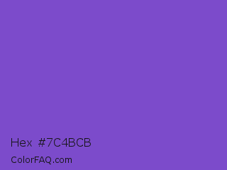 Hex #7c4bcb Color is a normal violet color and the nearest color is Fuchsia Blue #7a58c1. Hex code #7c4bcb and RGB value is rgb(124,75,203). In RGB color space, this color is composed of 49% red, 29% green, 80% blue, In CMYK color space, this color is composed of 39% cyan, 63% magenta, 0% yellow , 20% black , In HSL color space, this color has a hue angle of 263° , 55% saturation and 55% lightness.