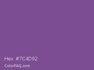 Hex #7c4d92 Color is a normal purple color and the nearest color is Dark Lavender #734f96. Hex code #7c4d92 and RGB value is rgb(124,77,146). In RGB color space, this color is composed of 49% red, 30% green, 57% blue, In CMYK color space, this color is composed of 15% cyan, 47% magenta, 0% yellow , 43% black , In HSL color space, this color has a hue angle of 281° , 31% saturation and 44% lightness.