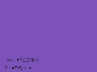 Hex #7c52ba Color is a normal violet color and the nearest color is Fuchsia Blue #7a58c1. Hex code #7c52ba and RGB value is rgb(124,82,186). In RGB color space, this color is composed of 49% red, 32% green, 73% blue, In CMYK color space, this color is composed of 33% cyan, 56% magenta, 0% yellow , 27% black , In HSL color space, this color has a hue angle of 264° , 43% saturation and 53% lightness.