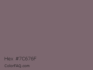 Hex #7c676f Color is a normal rose color and the nearest color is Falcon #7f626d. Hex code #7c676f and RGB value is rgb(124,103,111). In RGB color space, this color is composed of 49% red, 40% green, 44% blue, In CMYK color space, this color is composed of 0% cyan, 17% magenta, 10% yellow , 51% black , In HSL color space, this color has a hue angle of 337° , 9% saturation and 45% lightness.