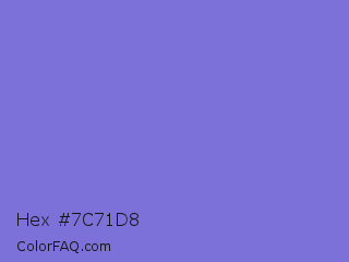 Hex #7c71d8 Color is a light indigo color and the nearest color is Moody Blue #7f76d3. Hex code #7c71d8 and RGB value is rgb(124,113,216). In RGB color space, this color is composed of 49% red, 44% green, 85% blue, In CMYK color space, this color is composed of 43% cyan, 48% magenta, 0% yellow , 15% black , In HSL color space, this color has a hue angle of 246° , 57% saturation and 65% lightness.