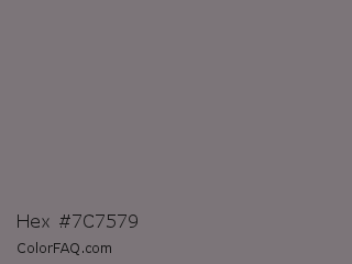 Hex #7c7579 Color is a normal magenta color and the nearest color is Boulder #7a7a7a. Hex code #7c7579 and RGB value is rgb(124,117,121). In RGB color space, this color is composed of 49% red, 46% green, 47% blue, In CMYK color space, this color is composed of 0% cyan, 6% magenta, 2% yellow , 51% black , In HSL color space, this color has a hue angle of 326° , 3% saturation and 47% lightness.