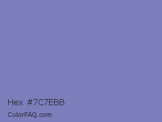 Hex #7c7ebb Color is a light blue color and the nearest color is Wild Blue Yonder #7a89b8. Hex code #7c7ebb and RGB value is rgb(124,126,187). In RGB color space, this color is composed of 49% red, 49% green, 73% blue, In CMYK color space, this color is composed of 34% cyan, 33% magenta, 0% yellow , 27% black , In HSL color space, this color has a hue angle of 238° , 32% saturation and 61% lightness.