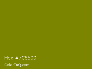 Hex #7c8500 Color is a dark yellow color and the nearest color is Olive #808000. Hex code #7c8500 and RGB value is rgb(124,133,0). In RGB color space, this color is composed of 49% red, 52% green, 0% blue, In CMYK color space, this color is composed of 7% cyan, 0% magenta, 100% yellow , 48% black , In HSL color space, this color has a hue angle of 64° , 100% saturation and 26% lightness.