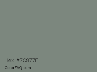 Hex #7c877e Color is a normal green color and the nearest color is Gray #808080. Hex code #7c877e and RGB value is rgb(124,135,126). In RGB color space, this color is composed of 49% red, 53% green, 49% blue, In CMYK color space, this color is composed of 8% cyan, 0% magenta, 7% yellow , 47% black , In HSL color space, this color has a hue angle of 131° , 4% saturation and 51% lightness.