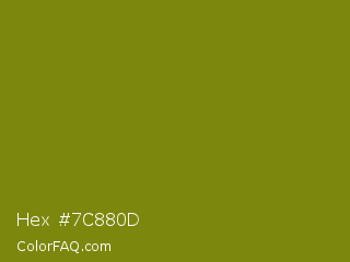 Hex #7c880d Color is a dark yellow color and the nearest color is Trendy Green #7c881a. Hex code #7c880d and RGB value is rgb(124,136,13). In RGB color space, this color is composed of 49% red, 53% green, 5% blue, In CMYK color space, this color is composed of 9% cyan, 0% magenta, 90% yellow , 47% black , In HSL color space, this color has a hue angle of 66° , 83% saturation and 29% lightness.