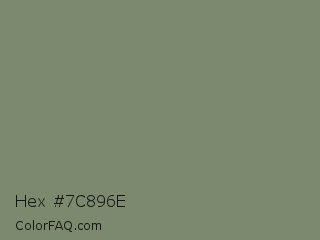 Hex #7c896e Color is a normal green color and the nearest color is Camouflage Green #78866b. Hex code #7c896e and RGB value is rgb(124,137,110). In RGB color space, this color is composed of 49% red, 54% green, 43% blue, In CMYK color space, this color is composed of 9% cyan, 0% magenta, 20% yellow , 46% black , In HSL color space, this color has a hue angle of 89° , 11% saturation and 48% lightness.