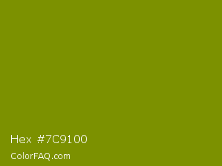 Hex #7c9100 Color is a dark yellow color and the nearest color is Olive #808000. Hex code #7c9100 and RGB value is rgb(124,145,0). In RGB color space, this color is composed of 49% red, 57% green, 0% blue, In CMYK color space, this color is composed of 14% cyan, 0% magenta, 100% yellow , 43% black , In HSL color space, this color has a hue angle of 69° , 100% saturation and 28% lightness.