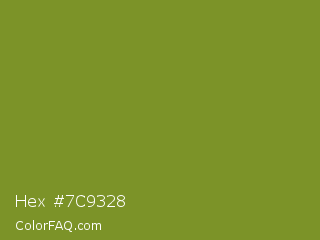 Hex #7c9328 Color is a normal lime color and the nearest color is Wasabi #788a25. Hex code #7c9328 and RGB value is rgb(124,147,40). In RGB color space, this color is composed of 49% red, 58% green, 16% blue, In CMYK color space, this color is composed of 16% cyan, 0% magenta, 73% yellow , 42% black , In HSL color space, this color has a hue angle of 73° , 57% saturation and 37% lightness.