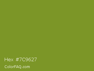 Hex #7c9627 Color is a normal lime color and the nearest color is Wasabi #788a25. Hex code #7c9627 and RGB value is rgb(124,150,39). In RGB color space, this color is composed of 49% red, 59% green, 15% blue, In CMYK color space, this color is composed of 17% cyan, 0% magenta, 74% yellow , 41% black , In HSL color space, this color has a hue angle of 74° , 59% saturation and 37% lightness.