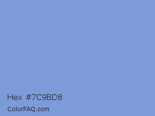 Hex #7c9bd8 Color is a light blue color and the nearest color is Vista Blue #7c9ed9. Hex code #7c9bd8 and RGB value is rgb(124,155,216). In RGB color space, this color is composed of 49% red, 61% green, 85% blue, In CMYK color space, this color is composed of 43% cyan, 28% magenta, 0% yellow , 15% black , In HSL color space, this color has a hue angle of 220° , 54% saturation and 67% lightness.