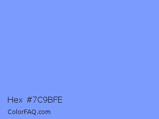Hex #7c9bfe Color is a light blue color and the nearest color is Portage #8b9fee. Hex code #7c9bfe and RGB value is rgb(124,155,254). In RGB color space, this color is composed of 49% red, 61% green, 100% blue, In CMYK color space, this color is composed of 51% cyan, 39% magenta, 0% yellow , 0% black , In HSL color space, this color has a hue angle of 226° , 98% saturation and 74% lightness.