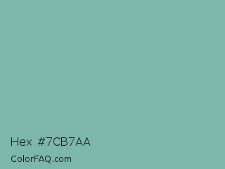 Hex #7cb7aa Color is a normal cyan color and the nearest color is Gulf Stream #80b3ae. Hex code #7cb7aa and RGB value is rgb(124,183,170). In RGB color space, this color is composed of 49% red, 72% green, 67% blue, In CMYK color space, this color is composed of 32% cyan, 0% magenta, 7% yellow , 28% black , In HSL color space, this color has a hue angle of 167° , 29% saturation and 60% lightness.