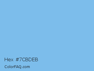 Hex #7cbdeb Color is a light blue color and the nearest color is Aero #7cb9e8. Hex code #7cbdeb and RGB value is rgb(124,189,235). In RGB color space, this color is composed of 49% red, 74% green, 92% blue, In CMYK color space, this color is composed of 47% cyan, 20% magenta, 0% yellow , 8% black , In HSL color space, this color has a hue angle of 205° , 74% saturation and 70% lightness.