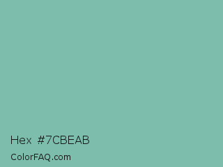 Hex #7cbeab Color is a light green color and the nearest color is Gulf Stream #80b3ae. Hex code #7cbeab and RGB value is rgb(124,190,171). In RGB color space, this color is composed of 49% red, 75% green, 67% blue, In CMYK color space, this color is composed of 35% cyan, 0% magenta, 10% yellow , 25% black , In HSL color space, this color has a hue angle of 163° , 34% saturation and 62% lightness.