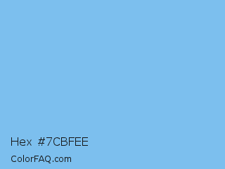 Hex #7cbfee Color is a light blue color and the nearest color is Aero #7cb9e8. Hex code #7cbfee and RGB value is rgb(124,191,238). In RGB color space, this color is composed of 49% red, 75% green, 93% blue, In CMYK color space, this color is composed of 48% cyan, 20% magenta, 0% yellow , 7% black , In HSL color space, this color has a hue angle of 205° , 77% saturation and 71% lightness.