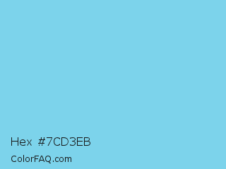 Hex #7cd3eb Color is a light cyan color and the nearest color is Middle Blue #7ed4e6. Hex code #7cd3eb and RGB value is rgb(124,211,235). In RGB color space, this color is composed of 49% red, 83% green, 92% blue, In CMYK color space, this color is composed of 47% cyan, 10% magenta, 0% yellow , 8% black , In HSL color space, this color has a hue angle of 193° , 74% saturation and 70% lightness.
