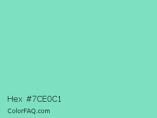 Hex #7ce0c1 Color is a light green color and the nearest color is Bermuda #7dd8c6. Hex code #7ce0c1 and RGB value is rgb(124,224,193). In RGB color space, this color is composed of 49% red, 88% green, 76% blue, In CMYK color space, this color is composed of 45% cyan, 0% magenta, 14% yellow , 12% black , In HSL color space, this color has a hue angle of 161° , 62% saturation and 68% lightness.