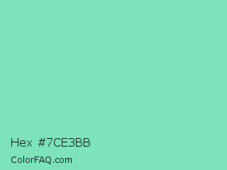 Hex #7ce3bb Color is a light green color and the nearest color is Bermuda #7dd8c6. Hex code #7ce3bb and RGB value is rgb(124,227,187). In RGB color space, this color is composed of 49% red, 89% green, 73% blue, In CMYK color space, this color is composed of 45% cyan, 0% magenta, 18% yellow , 11% black , In HSL color space, this color has a hue angle of 157° , 65% saturation and 69% lightness.