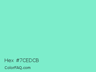 Hex #7cedcb Color is a light green color and the nearest color is Aquamarine #7fffd4. Hex code #7cedcb and RGB value is rgb(124,237,203). In RGB color space, this color is composed of 49% red, 93% green, 80% blue, In CMYK color space, this color is composed of 48% cyan, 0% magenta, 14% yellow , 7% black , In HSL color space, this color has a hue angle of 162° , 76% saturation and 71% lightness.
