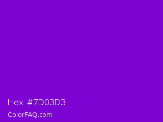 Hex #7d03d3 Color is a normal purple color and the nearest color is French Violet #8806ce. Hex code #7d03d3 and RGB value is rgb(125,3,211). In RGB color space, this color is composed of 49% red, 1% green, 83% blue, In CMYK color space, this color is composed of 41% cyan, 99% magenta, 0% yellow , 17% black , In HSL color space, this color has a hue angle of 275° , 97% saturation and 42% lightness.