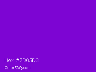 Hex #7d05d3 Color is a normal purple color and the nearest color is French Violet #8806ce. Hex code #7d05d3 and RGB value is rgb(125,5,211). In RGB color space, this color is composed of 49% red, 2% green, 83% blue, In CMYK color space, this color is composed of 41% cyan, 98% magenta, 0% yellow , 17% black , In HSL color space, this color has a hue angle of 275° , 95% saturation and 42% lightness.