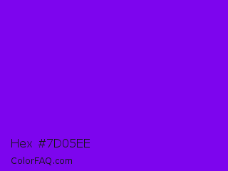 Hex #7d05ee Color is a normal purple color and the nearest color is Violet Color Wheel #7f00ff. Hex code #7d05ee and RGB value is rgb(125,5,238). In RGB color space, this color is composed of 49% red, 2% green, 93% blue, In CMYK color space, this color is composed of 47% cyan, 98% magenta, 0% yellow , 7% black , In HSL color space, this color has a hue angle of 271° , 96% saturation and 48% lightness.