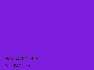 Hex #7d1dde Color is a normal violet color and the nearest color is Blue Violet #8a2be2. Hex code #7d1dde and RGB value is rgb(125,29,222). In RGB color space, this color is composed of 49% red, 11% green, 87% blue, In CMYK color space, this color is composed of 44% cyan, 87% magenta, 0% yellow , 13% black , In HSL color space, this color has a hue angle of 270° , 77% saturation and 49% lightness.