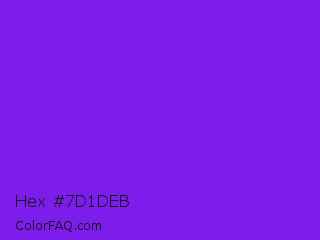 Hex #7d1deb Color is a normal violet color and the nearest color is Blue Violet #8a2be2. Hex code #7d1deb and RGB value is rgb(125,29,235). In RGB color space, this color is composed of 49% red, 11% green, 92% blue, In CMYK color space, this color is composed of 47% cyan, 88% magenta, 0% yellow , 8% black , In HSL color space, this color has a hue angle of 268° , 84% saturation and 52% lightness.