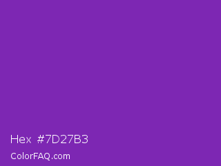 Hex #7d27b3 Color is a normal purple color and the nearest color is Grape #6f2da8. Hex code #7d27b3 and RGB value is rgb(125,39,179). In RGB color space, this color is composed of 49% red, 15% green, 70% blue, In CMYK color space, this color is composed of 30% cyan, 78% magenta, 0% yellow , 30% black , In HSL color space, this color has a hue angle of 277° , 64% saturation and 43% lightness.