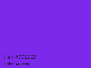 Hex #7d29eb Color is a normal violet color and the nearest color is Blue Violet #8a2be2. Hex code #7d29eb and RGB value is rgb(125,41,235). In RGB color space, this color is composed of 49% red, 16% green, 92% blue, In CMYK color space, this color is composed of 47% cyan, 83% magenta, 0% yellow , 8% black , In HSL color space, this color has a hue angle of 266° , 83% saturation and 54% lightness.