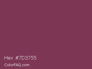 Hex #7d3755 Color is a normal rose color and the nearest color is Cosmic #76395d. Hex code #7d3755 and RGB value is rgb(125,55,85). In RGB color space, this color is composed of 49% red, 22% green, 33% blue, In CMYK color space, this color is composed of 0% cyan, 56% magenta, 32% yellow , 51% black , In HSL color space, this color has a hue angle of 334° , 39% saturation and 35% lightness.