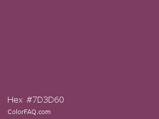 Hex #7d3d60 Color is a normal magenta color and the nearest color is Cosmic #76395d. Hex code #7d3d60 and RGB value is rgb(125,61,96). In RGB color space, this color is composed of 49% red, 24% green, 38% blue, In CMYK color space, this color is composed of 0% cyan, 51% magenta, 23% yellow , 51% black , In HSL color space, this color has a hue angle of 327° , 34% saturation and 36% lightness.