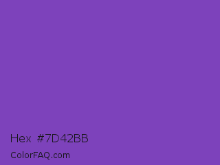 Hex #7d42bb Color is a normal violet color and the nearest color is Studio #714ab2. Hex code #7d42bb and RGB value is rgb(125,66,187). In RGB color space, this color is composed of 49% red, 26% green, 73% blue, In CMYK color space, this color is composed of 33% cyan, 65% magenta, 0% yellow , 27% black , In HSL color space, this color has a hue angle of 269° , 48% saturation and 50% lightness.