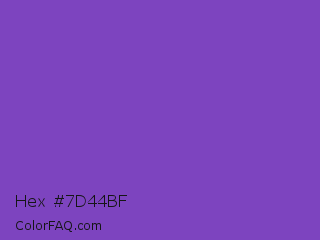 Hex #7d44bf Color is a normal violet color and the nearest color is Studio #714ab2. Hex code #7d44bf and RGB value is rgb(125,68,191). In RGB color space, this color is composed of 49% red, 27% green, 75% blue, In CMYK color space, this color is composed of 35% cyan, 64% magenta, 0% yellow , 25% black , In HSL color space, this color has a hue angle of 268° , 49% saturation and 51% lightness.