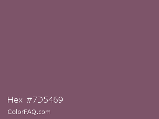 Hex #7d5469 Color is a normal rose color and the nearest color is Deep Taupe #7e5e60. Hex code #7d5469 and RGB value is rgb(125,84,105). In RGB color space, this color is composed of 49% red, 33% green, 41% blue, In CMYK color space, this color is composed of 0% cyan, 33% magenta, 16% yellow , 51% black , In HSL color space, this color has a hue angle of 329° , 20% saturation and 41% lightness.