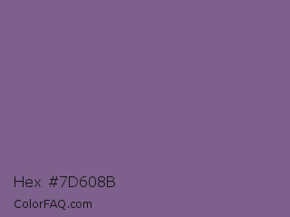 Hex #7d608b Color is a normal purple color and the nearest color is Chinese Violet #856088. Hex code #7d608b and RGB value is rgb(125,96,139). In RGB color space, this color is composed of 49% red, 38% green, 55% blue, In CMYK color space, this color is composed of 10% cyan, 31% magenta, 0% yellow , 45% black , In HSL color space, this color has a hue angle of 280° , 18% saturation and 46% lightness.
