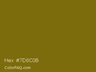 Hex #7d6c0b Color is a dark yellow color and the nearest color is Yukon Gold #7b6608. Hex code #7d6c0b and RGB value is rgb(125,108,11). In RGB color space, this color is composed of 49% red, 42% green, 4% blue, In CMYK color space, this color is composed of 0% cyan, 14% magenta, 91% yellow , 51% black , In HSL color space, this color has a hue angle of 51° , 84% saturation and 27% lightness.