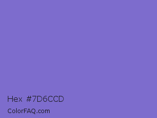 Hex #7d6ccd Color is a light indigo color and the nearest color is Blue Marguerite #7666c6. Hex code #7d6ccd and RGB value is rgb(125,108,205). In RGB color space, this color is composed of 49% red, 42% green, 80% blue, In CMYK color space, this color is composed of 39% cyan, 47% magenta, 0% yellow , 20% black , In HSL color space, this color has a hue angle of 251° , 49% saturation and 61% lightness.