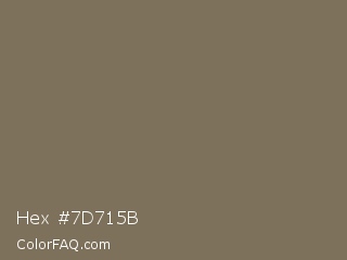 Hex #7d715b Color is a normal orange color and the nearest color is Pablo #776f61. Hex code #7d715b and RGB value is rgb(125,113,91). In RGB color space, this color is composed of 49% red, 44% green, 36% blue, In CMYK color space, this color is composed of 0% cyan, 10% magenta, 27% yellow , 51% black , In HSL color space, this color has a hue angle of 39° , 16% saturation and 42% lightness.