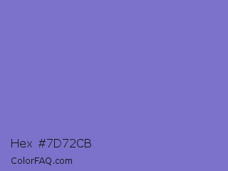 Hex #7d72cb Color is a light indigo color and the nearest color is Moody Blue #7f76d3. Hex code #7d72cb and RGB value is rgb(125,114,203). In RGB color space, this color is composed of 49% red, 45% green, 80% blue, In CMYK color space, this color is composed of 38% cyan, 44% magenta, 0% yellow , 20% black , In HSL color space, this color has a hue angle of 247° , 46% saturation and 62% lightness.