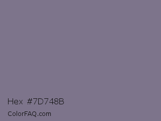 Hex #7d748b Color is a normal violet color and the nearest color is Mobster #7f7589. Hex code #7d748b and RGB value is rgb(125,116,139). In RGB color space, this color is composed of 49% red, 45% green, 55% blue, In CMYK color space, this color is composed of 10% cyan, 17% magenta, 0% yellow , 45% black , In HSL color space, this color has a hue angle of 263° , 9% saturation and 50% lightness.