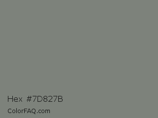 Hex #7d827b Color is a normal green color and the nearest color is Friar Gray #807e79. Hex code #7d827b and RGB value is rgb(125,130,123). In RGB color space, this color is composed of 49% red, 51% green, 48% blue, In CMYK color space, this color is composed of 4% cyan, 0% magenta, 5% yellow , 49% black , In HSL color space, this color has a hue angle of 103° , 3% saturation and 50% lightness.