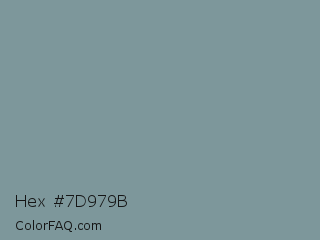 Hex #7d979b Color is a normal cyan color and the nearest color is Regent Gray #86949f. Hex code #7d979b and RGB value is rgb(125,151,155). In RGB color space, this color is composed of 49% red, 59% green, 61% blue, In CMYK color space, this color is composed of 19% cyan, 3% magenta, 0% yellow , 39% black , In HSL color space, this color has a hue angle of 188° , 13% saturation and 55% lightness.