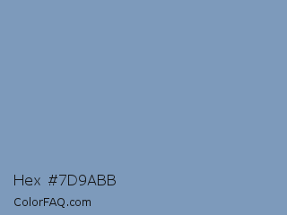 Hex #7d9abb Color is a light blue color and the nearest color is Air Superiority Blue #72a0c1. Hex code #7d9abb and RGB value is rgb(125,154,187). In RGB color space, this color is composed of 49% red, 60% green, 73% blue, In CMYK color space, this color is composed of 33% cyan, 18% magenta, 0% yellow , 27% black , In HSL color space, this color has a hue angle of 212° , 31% saturation and 61% lightness.