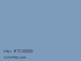 Hex #7d9bbb Color is a light blue color and the nearest color is Air Superiority Blue #72a0c1. Hex code #7d9bbb and RGB value is rgb(125,155,187). In RGB color space, this color is composed of 49% red, 61% green, 73% blue, In CMYK color space, this color is composed of 33% cyan, 17% magenta, 0% yellow , 27% black , In HSL color space, this color has a hue angle of 211° , 31% saturation and 61% lightness.