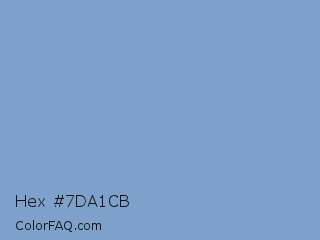 Hex #7da1cb Color is a light blue color and the nearest color is Dark Pastel Blue #779ecb. Hex code #7da1cb and RGB value is rgb(125,161,203). In RGB color space, this color is composed of 49% red, 63% green, 80% blue, In CMYK color space, this color is composed of 38% cyan, 21% magenta, 0% yellow , 20% black , In HSL color space, this color has a hue angle of 212° , 43% saturation and 64% lightness.