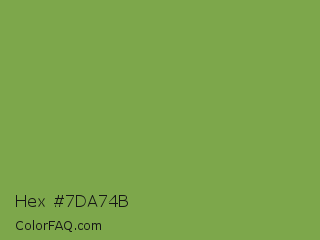 Hex #7da74b Color is a normal green color and the nearest color is Asparagus Green #7ba05b. Hex code #7da74b and RGB value is rgb(125,167,75). In RGB color space, this color is composed of 49% red, 65% green, 29% blue, In CMYK color space, this color is composed of 25% cyan, 0% magenta, 55% yellow , 35% black , In HSL color space, this color has a hue angle of 87° , 38% saturation and 47% lightness.