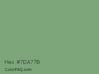 Hex #7da77b Color is a normal green color and the nearest color is Amulet #7b9f80. Hex code #7da77b and RGB value is rgb(125,167,123). In RGB color space, this color is composed of 49% red, 65% green, 48% blue, In CMYK color space, this color is composed of 25% cyan, 0% magenta, 26% yellow , 35% black , In HSL color space, this color has a hue angle of 117° , 20% saturation and 57% lightness.