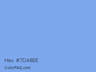 Hex #7da8ee Color is a light blue color and the nearest color is Portage #8b9fee. Hex code #7da8ee and RGB value is rgb(125,168,238). In RGB color space, this color is composed of 49% red, 66% green, 93% blue, In CMYK color space, this color is composed of 47% cyan, 29% magenta, 0% yellow , 7% black , In HSL color space, this color has a hue angle of 217° , 77% saturation and 71% lightness.